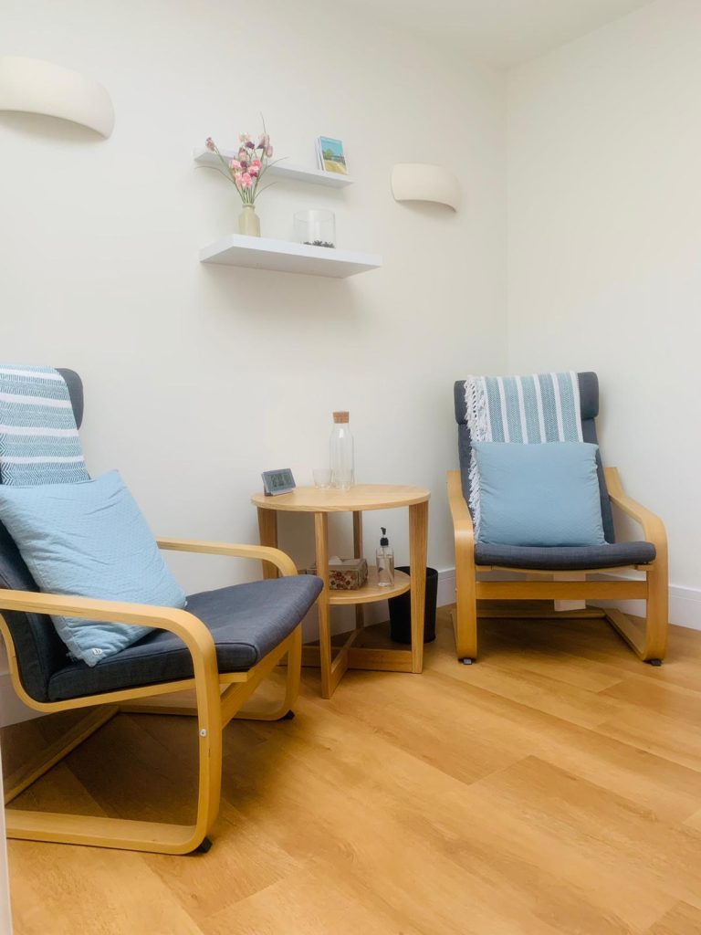 Our light & peaceful treatment rooms are newly refurbished with comfortable chairs and soft lighting for relaxation, and sound proofed for privacy and relaxation. We have two bigger rooms, one is equipped with a massage table and the other has space for one if you wish to bring your own.